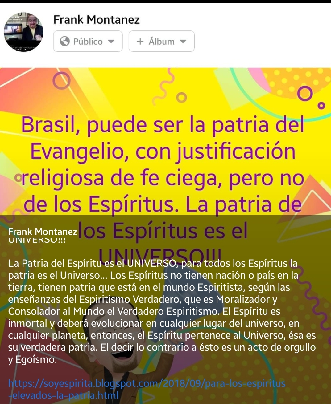 Así es, la patria del Espíritu está en el Cielo, no es en Brasil, cómo decía Chico Xavier, y sigue diciendo Divaldo Pereira Franco...!!!!